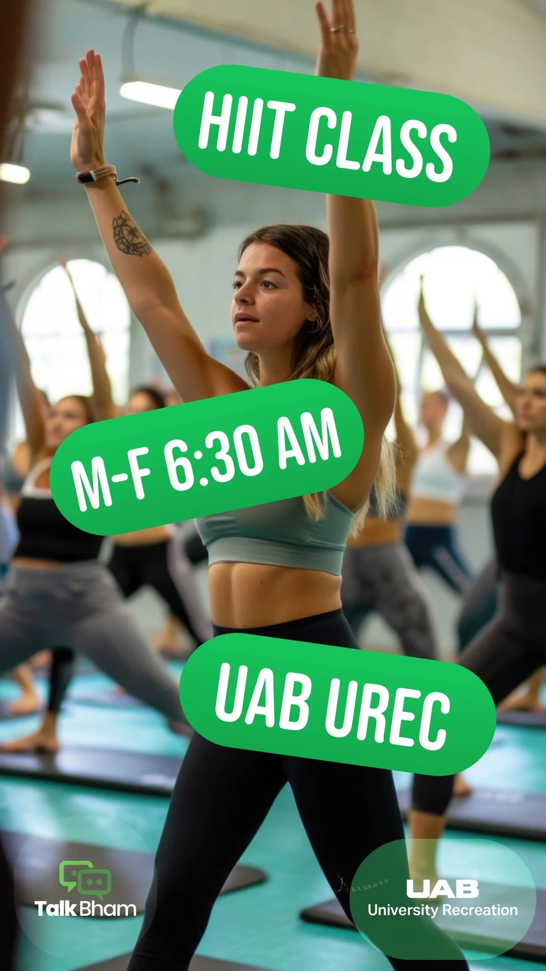 We also teach High Energy HIIT classes at the UAB University Recreation Center at 6:30 AM, Monday thru Friday. These classes combine fun movements, music with energy, and a strong community to give you a major boost to start your day.